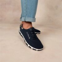 Voici la basket qui mixe vibes marines et chic urbain sans en faire trop 😍 La TBS JAZARIA en bleu profond twisté d’un détail métallisé à l’arrière apporte juste ce qu’il faut de lumière pour upgrader vos looks du quotidien ✨ Sa maille respirante épouse le pied avec douceur, sa construction soudée assure souplesse et légèreté à chaque pas, et son chaussant normal la rend facile à adopter illico 🙌 On adore sa semelle ultra flexible qui accompagne le mouvement naturellement, son confort longue durée grâce à la semelle intérieure amovible, et son esprit bord de mer revisité version city cool 🌊👟 À porter avec un jean retroussé, un pantalon blanc ou même une robe casual pour un look effortless mais toujours stylé 💫 Clairement, la paire parfaite pour courir partout… avec allure 😎