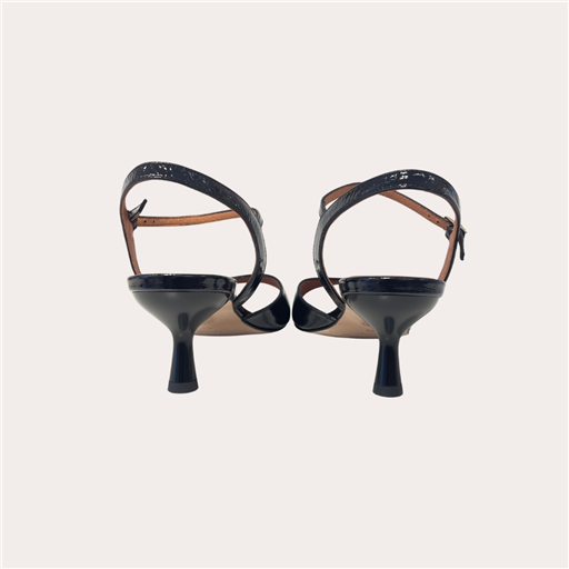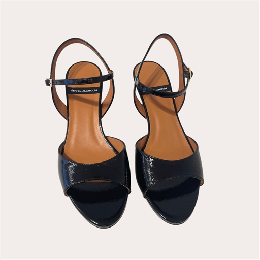 Minimaliste mais ultra stylée 🖤✨ la sandale Angel Alarcon Malory est LA pièce chic qui fait toute la différence 😍 avec son cuir noir brillant effet glossy et son talon subtilement travaillé, elle mixe parfaitement élégance et modernité 💃 la bride fine à la cheville assure un maintien au top tout en allongeant la silhouette avec finesse 👌 facile à porter, elle passe du look bureau au dîner en terrasse sans effort, et s’associe avec tout pour un style toujours impeccable 😎 un basique revisité qui va clairement devenir ton allié mode préféré 💥