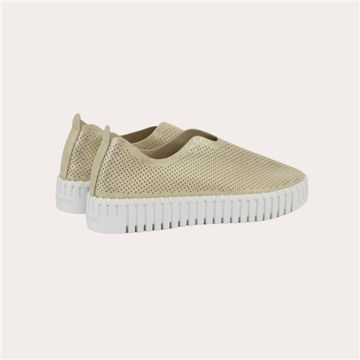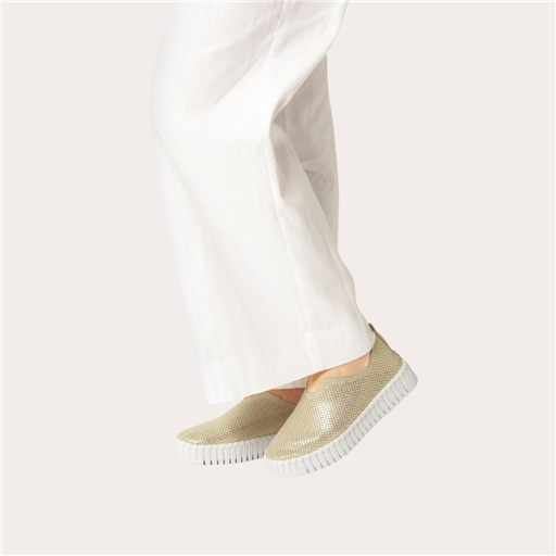 La Ilse Jacobsen Tulip Plateforme Pailletée Platin White ✨🤍 c’est le mix parfait entre confort iconique et twist glitter ultra mode 😍 On retrouve la silhouette Tulip qu’on adore, revisitée avec une finition subtilement scintillante qui capte la lumière sans jamais en faire trop 💫 Sa tige en microfibre recyclée perforée au laser apporte légèreté et respirabilité, tandis que la semelle plateforme Tulip souple donne ce petit boost de hauteur hyper flatteur et moderne 👟🌿 Le tout est cousu avec fil recyclé assorti, sans colle, pour une conception plus responsable et toujours aussi flexible 👌 À l’intérieur, la semelle rembourrée avec maintien assure un confort au top du matin au soir, que ce soit pour dynamiser un look casual chic ou upgrader une tenue plus minimaliste ✨ Clairement la paire “waouh mais facile” qu’on enfile pour briller en toute simplicité 🤍