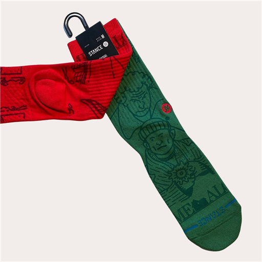 Revivez la magie des fêtes avec les chaussettes Stance Home Alone, inspirées du film culte “Maman, j’ai raté l’avion”. Ce modèle original arbore un design asymétrique rouge et vert, illustré des personnages emblématiques du film, pour un style à la fois fun et rétro.