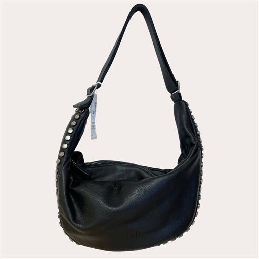 Optez pour l’élégance rock avec le sac Biba Bowie noir. Confectionné en cuir souple de qualité, ce modèle intemporel se distingue par sa forme demi-lune moderne et ses finitions métalliques façon clous qui lui donnent un caractère affirmé. Son anse ajustable permet de le porter à l’épaule ou à la main avec confort. Pratique, il dispose d’un compartiment principal zippé et de rangements intérieurs pour garder vos essentiels à portée de main. Ses dimensions idéales (35 x 25 x 12 cm) en font un allié du quotidien, alliant style et fonctionnalité.