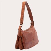 Le sac Boston de Biba, en cuir de vache lavé et tanné végétalement, offre un format hobo compact avec une anse, une bandoulière amovible, une fermeture zippée et un intérieur fonctionnel. Dimension : 26 x 17 x 11 cm.