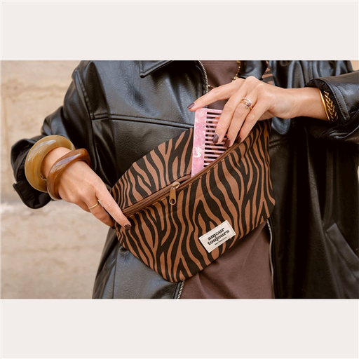 Sa sangle ajustable permet de le porter aussi bien en bandoulière qu’à la taille, tandis que sa grande ouverture zippée offre un accès facile et rapide à vos affaires.