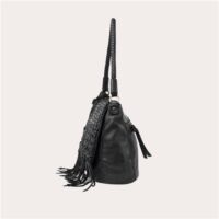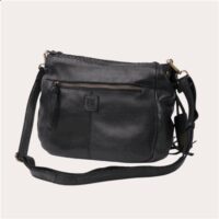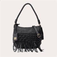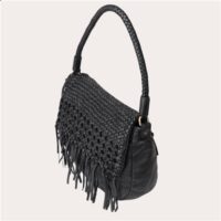 Le sac Varney de Biba, en cuir de vache lavé et tressé à la main, combine différentes techniques de tressage sur le rabat avec une fermeture à bouton et à zipper, une bandoulière tressée et des poches multiples. Dimension : 25 x 22 x 10 cm.