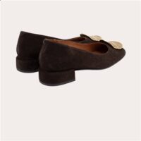 Élégance intemporelle et confort au quotidien : le modèle Perle d’Angel Alarcón séduit par son allure raffinée et ses détails soignés. Conçue en daim marron profond, cette chaussure à talon bas bloc offre un maintien parfait et une touche sophistiquée grâce à son ornement bijoux dorée sur l’avant. Sa semelle souple et son intérieur doublé cuir assurent un confort optimal, idéal pour accompagner toutes vos journées avec style.