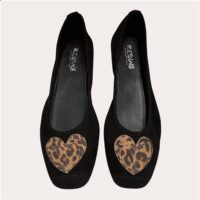 Craquez pour l’élégance romantique et fun des ballerines Holove de Reqins. Ce modèle tout en douceur noire se distingue par son détail cœur en imprimé léopard cousu sur l’avant — un clin d’œil mode plein de caractère qui séduira les amoureuses de pièces originales.