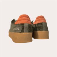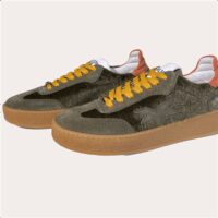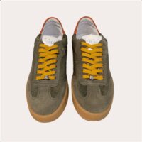 Affirme ton style avec ces baskets Méliné au look rétro revisité. Confectionnées en cuir et matière effet poil, elles se distinguent par leur coloris kaki profond, relevé par des détails contrastés : lacets jaunes en coton, étoile emblématique ton sur ton et empiècements orange au talon. Montées sur une semelle en gomme beige, ces sneakers allient confort et originalité. Leur doublure intérieure douce garantit un port agréable au quotidien. Un modèle tendance et audacieux, parfait pour donner une touche d’énergie à toutes tes tenues décontractées.