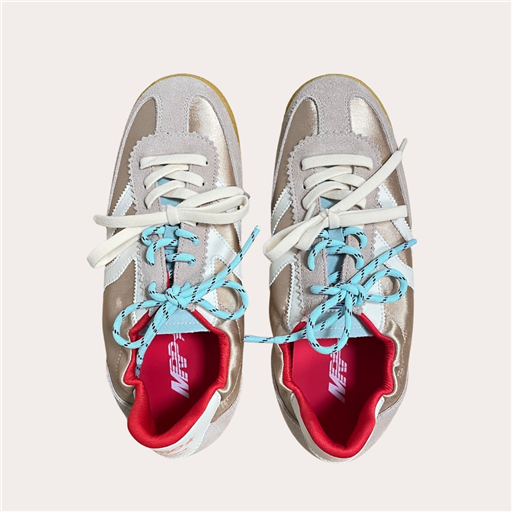 Avec la Pure V10, MRP joue la carte de la lumière et de l’élégance subtile. Ses tons clairs et irisés, mêlant beige, écru et reflets délicatement satinés, apportent une touche raffinée et ultra moderne à cette sneaker d’inspiration vintage.