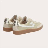 Affichez un style affirmé et élégant avec les sneakers Schmoove. Conçues en cuir et textile scintillant, elles combinent confort et allure moderne. Leur tige beige agrémentée de détails dorés et blancs apporte une touche lumineuse et raffinée à vos tenues, tandis que le contrefort métallisé doré renforce le côté chic et tendance. La semelle en caoutchouc couleur gomme garantit une excellente adhérence et une durabilité optimale.