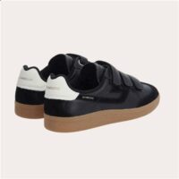 Confectionnées en cuir lisse et suède noir, elles reposent sur une semelle en caoutchouc couleur miel qui contraste subtilement avec l’empeigne sombre. Le talon blanc vient ajouter une note graphique et moderne à l’ensemble. Leur design épuré et leurs finitions soignées font de ces baskets un choix polyvalent, aussi bien pour le quotidien que pour des looks plus affirmés.