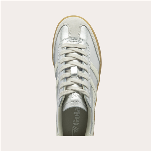Icône de 1976 remise au goût du jour, la Gola Viper Metallic débarque en version argentée ultra canon 😍 Son cuir métallisé silver illumine instantanément la silhouette, twisté par le mythique wingflash off white et une semelle gomme qui sent bon le vintage sportif 🤍✨ On adore son look court en T ultra sleek, sa touche suédée au bout et au talon pour le contraste chic, et ce mix parfait entre rétro 70’s et vibe street actuelle 🔥 Facile à porter avec un jean loose, une robe fluide ou un tailleur cool, elle apporte ce petit glow qui change tout sans en faire trop 💫 Confortable, stylée et carrément désirable si tu aimes les tons argent, champagne ou gold… clairement une paire coup de cœur à enfiler non-stop 💃