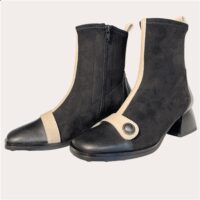 Adoptez un style unique avec les bottines Hispanitas, une création qui allie élégance rétro et modernité. Confectionnées en cuir et textile noir, elles se distinguent par leur contraste raffiné grâce aux empiècements beige et au bouton décoratif sophistiqué sur l’avant. Leur talon large de hauteur confortable offre stabilité et allure chic, parfait pour vos journées actives comme vos soirées élégantes.