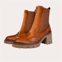 Apportez une touche de caractère et d’élégance contemporaine à vos looks avec les bottines Hispanitas. Confectionnées en cuir et daim de haute qualité, elles se distinguent par leur superbe teinte cognac et leurs finitions brillantes sur l’avant et l’arrière. Leur design associe confort et modernité : une fermeture éclair frontale pratique, un élastique latéral pour un meilleur ajustement et un talon bloc large qui assure stabilité et allure affirmée.