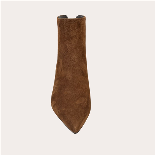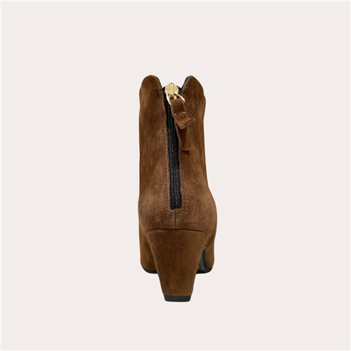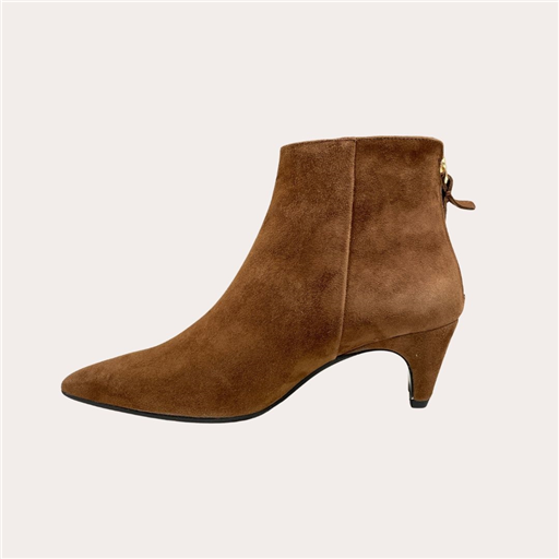 Élégantes et intemporelles, les bottines Eva Luna en cuir suédé marron sont l’allié parfait de vos looks du quotidien comme des occasions plus habillées. Leur ligne fine à bout pointu et leur petit talon de 5 cm offrent féminité et confort. La fermeture zippée discrète à l’arrière facilite l’enfilage tout en apportant une touche moderne. Ces bottines subliment aussi bien un jean slim qu’une robe fluide, pour un style chic et sans effort.