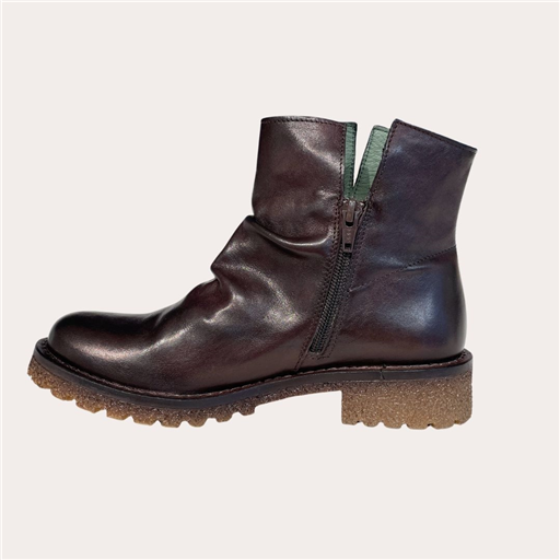 Découvrez la bottine Felmini, un modèle alliant authenticité et confort. Confectionnée en cuir souple marron foncé, elle se distingue par son effet plissé élégant sur l’empeigne qui lui confère un style casual chic. Sa semelle crantée en caoutchouc offre une excellente adhérence et un confort optimal pour vos journées actives. Grâce à sa fermeture éclair latérale, elle est facile à enfiler tout en restant parfaitement ajustée. Polyvalente, elle s’accorde aussi bien avec un jean qu’avec une robe pour un look tendance en toutes circonstances.