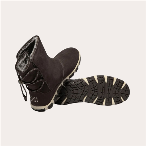 Adoptez le confort et la chaleur des bottes TBS Jazsnow. Confectionnées en cuir suédé marron foncé ou noire, elles sont doublées en fourrure synthétique pour un hiver douillet. Leur semelle extérieure robuste en caoutchouc offre une excellente adhérence sur toutes surfaces, tandis que le cordon réglable à l’arrière apporte une touche moderne et féminine. Faciles à enfiler, ces bottes mi-mollet combinent style, praticité et confort, idéales pour vos journées d’hiver en ville comme à la montagne.