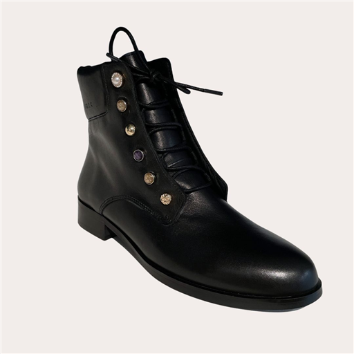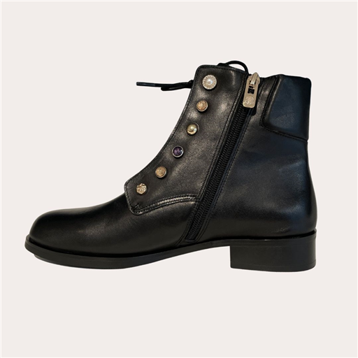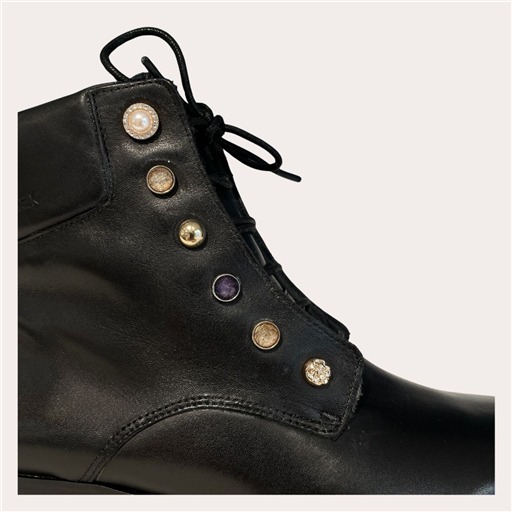 Apportez une touche d’élégance singulière à vos looks avec les bottines Emilie Karston Milano. Confectionnées en cuir noir de qualité, elles se distinguent par leur ligne sobre relevée de détails raffinés : une série de boutons bijoux multicolores façon perles et pierres, qui apportent une note chic et originale.