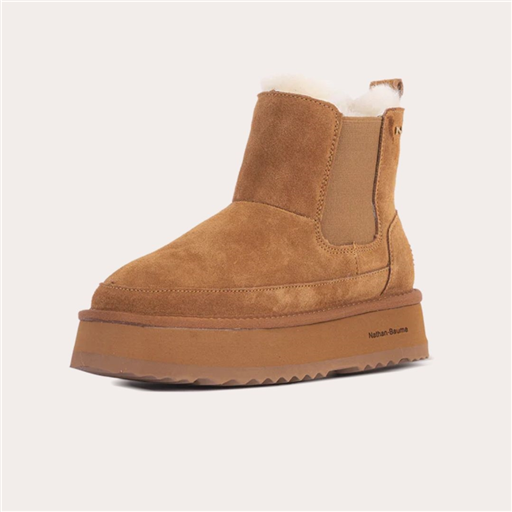 Découvrez la bottine Nathan Baume Suede en daim cognac, conçue pour allier confort et élégance au quotidien. Son design moderne façon Chelsea est sublimé par une finition en daim premium, associée à une doublure en peau de mouton pour une chaleur naturelle et un confort optimal durant la saison froide.