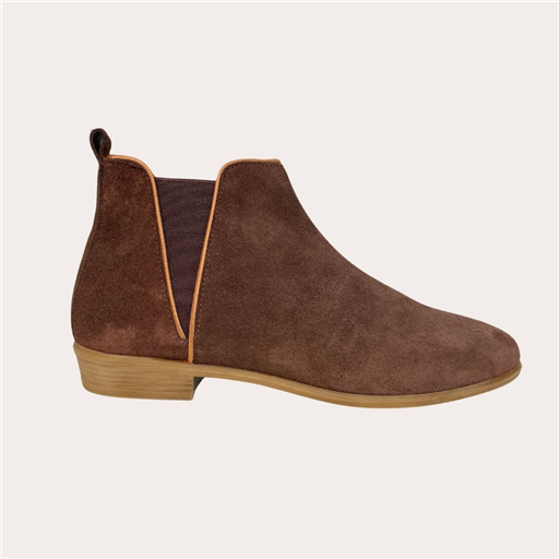 Adoptez l’élégance intemporelle avec les bottines Coco Abricot. Confectionnées en cuir suédé noir ou marron, elles séduisent par leur design épuré de type Chelsea, souligné par un liseré contrastant couleur camel. Faciles à enfiler grâce à leurs élastiques latéraux et leur languette arrière, elles offrent confort et maintien au quotidien. Leur semelle plate légèrement boisée assure stabilité et légèreté, pour un look chic et décontracté qui s’adapte aussi bien aux journées de travail qu’aux sorties en ville.