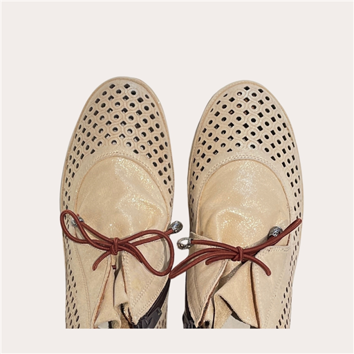 Craquez pour les Malestroit de Coco & Abricot 😍, la petite pépite qui mixe esprit bohème et confort au quotidien ! Avec leur cuir beige lumineux subtilement irisé ✨ et leurs découpes perforées ultra stylées, elles laissent respirer le pied tout en apportant ce petit côté artisanal hyper tendance 🌿 Le détail qu’on adore ? Le lacet fin qui ajoute une touche casual chic et permet un ajustement parfait, sans oublier le zip sur le côté pour les enfiler en un clin d’œil ⚡ Résultat : un look cool, léger et facile à porter du matin au soir, parfait avec un jean, une robe ou un short d’été ☀️ Bref, la chaussure idéale pour un style décontracté mais toujours pointu !