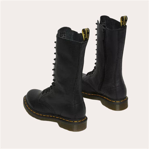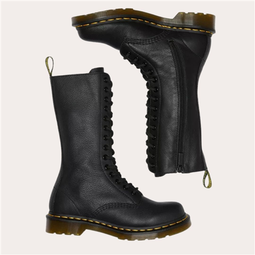 Affirmez votre style avec les bottes Dr. Martens Virginia en cuir noir. Confectionnées dans un cuir souple Virginia à l’aspect texturé, elles offrent confort et résistance. Avec leur hauteur montante à 14 œillets, elles allient caractère et allure intemporelle. La semelle à coussin d’air AirWair™, signature de la marque, assure un confort inégalé et une adhérence optimale. Zip latéral pratique pour un enfilage facile, coutures jaunes iconiques et languette arrière emblématique complètent ce modèle audacieux. Un must-have pour un look affirmé, du quotidien aux sorties stylées.