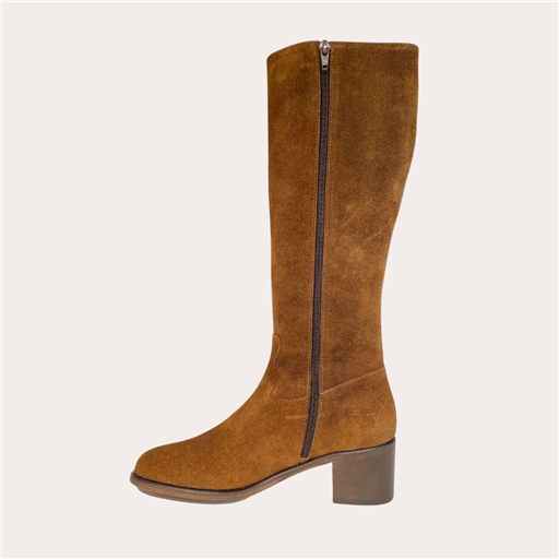 Optez pour l’élégance intemporelle avec la botte Maroli en cuir suédé camel. Sa ligne épurée et son design minimaliste en font un indispensable du vestiaire féminin. Confectionnée en daim souple de haute qualité, elle offre confort et raffinement tout au long de la journée. La tige haute allonge la silhouette, tandis que le talon bloc de hauteur idéale assure stabilité et allure chic. Une fermeture latérale discrète permet un enfilage facile et un maintien parfait. À porter aussi bien avec une jupe fluide qu’un jean slim pour un look moderne et sophistiqué.