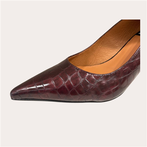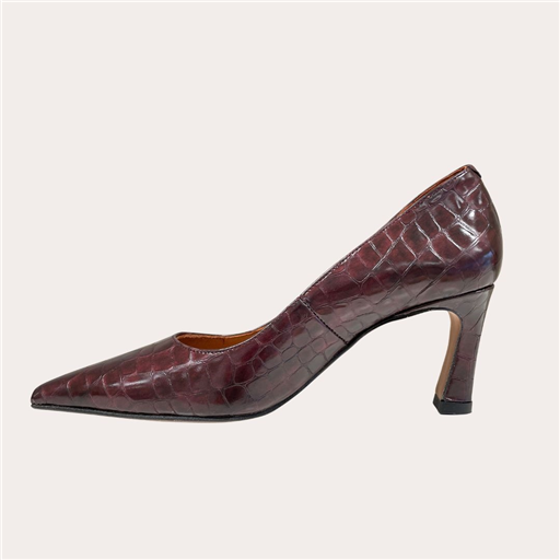 Apportez élégance et raffinement à vos tenues avec l’escarpin Angel Alarcón. Conçu en cuir imprimé effet croco bordeaux, ce modèle séduit par son allure sophistiquée et intemporelle. Son talon de 7 cm assure une silhouette élancée tout en offrant un bon confort pour une utilisation quotidienne ou lors d’occasions spéciales. Avec son bout pointu et ses finitions soignées, cet escarpin se marie parfaitement aussi bien avec un pantalon habillé qu’une robe élégante.