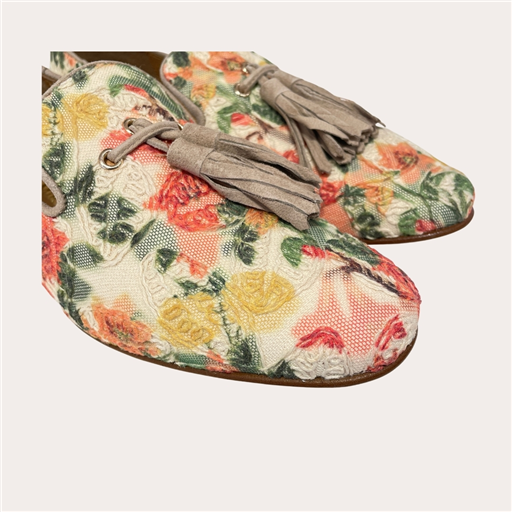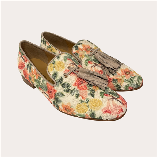 Attention pépite mode en vue ✨👞 ! Les Pedro Miralles Selva Ocre sont le parfait mélange entre élégance, originalité et petit twist mode qu’on adore. Avec leur tissu brodé floral aux nuances ocre, vert et corail, ces mocassins ont un charme fou et apportent instantanément du caractère à une tenue. Le détail des pompons en cuir taupe ajoute une touche chic et décontractée à la fois, tandis que la silhouette fine et le petit talon en bois donnent ce côté sophistiqué mais facile à porter au quotidien. Résultat : une chaussure qui attire les regards tout en restant hyper confortable, parfaite pour réveiller un jean, sublimer un pantalon fluide ou accompagner une robe avec style. Clairement le genre de paire qu’on enfile pour donner du pep’s à son look tout en restant élégante… et avec un petit air bohème très tendance 🌸✨.