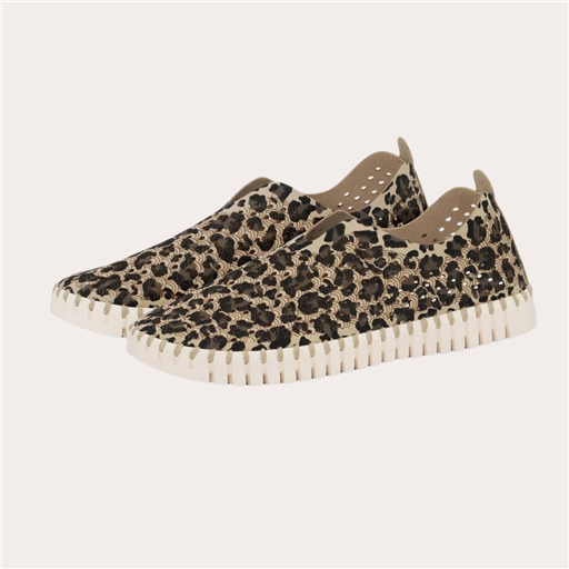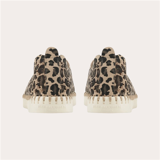 La Tulip d’Ilse Jacobsen, c’est la basket iconique revisitée en version léopard ultra stylée. Un imprimé sauvage chic, un effet légèrement perlé hyper lumineux, et surtout… un confort qui donne envie de ne plus jamais les quitter. Confectionnée en microfibre recyclée, cette beauté est aussi responsable que tendance. Son motif est sublimé par un découpage laser qui apporte légèreté et respirabilité — parfait pour la saison printemps/été 2026 🌞