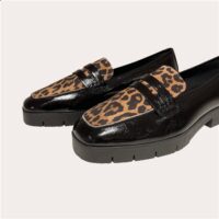 Affirmez votre style avec audace grâce au mocassin Mariella signé Reqins, une pièce maîtresse qui allie confort et personnalité. Ce modèle bouscule les codes classiques avec un cuir verni noir élégant associé à un empiècement imprimé léopard en suède sur le dessus. Résultat : une allure férocement chic, parfaite pour pimper vos looks du quotidien.