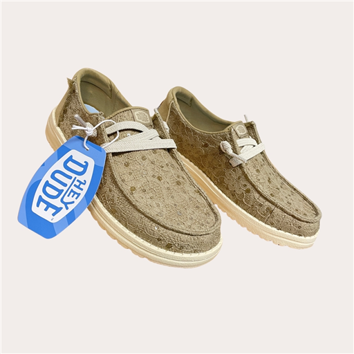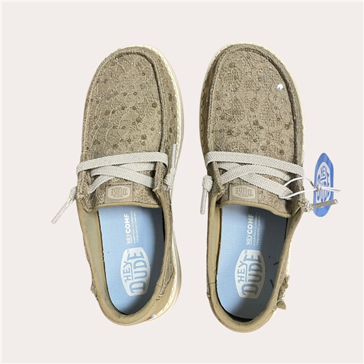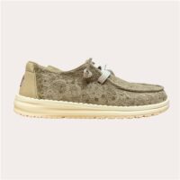 Prête à briller sans en faire trop ? ✨ Les Hey Dude Wendy Sequin sont LA touche chic-décontractée qui fait toute la différence 😍 Avec leur toile délicatement texturée à sequins, elles captent la lumière juste comme il faut pour un look stylé mais effortless 💫 Ultra légères et confortables, tu as l’impression de marcher sur un nuage ☁️ grâce à leur semelle souple et leur chaussant easy à enfiler (team zéro prise de tête 😌) Les lacets élastiques ajoutent ce côté pratique qu’on adore au quotidien, et les teintes naturelles ivory ou olive s’associent facilement à tous tes outfits, du jean cool au look plus habillé 🌿🤍 Résultat : une paire tendance, féminine et hyper agréable à porter du matin au soir 💯