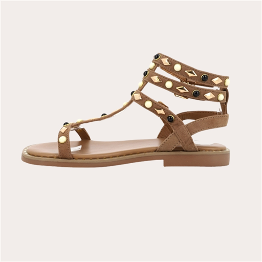 Les sandales CORIKA des Tropéziennes, c’est LA paire qui mixe parfaitement esprit bohème et attitude rock chic 🤎✨ Avec leurs brides multiples qui remontent élégamment sur la cheville et leurs petits clous dorés et noirs qui donnent juste ce qu’il faut de caractère 💫, elles apportent une vraie personnalité à ton look sans en faire trop 😍 Ultra stylées et faciles à porter, elles subliment aussi bien une robe légère qu’un short en jean ou un pantalon fluide 🌞 Le cuir souple épouse le pied pour un confort au top toute la journée, pendant que les boucles ajustables assurent un maintien parfait 👌 Bref, une sandale canon, tendance et super cool qui te suit partout avec style 😎