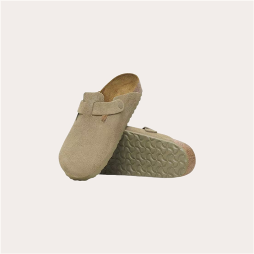 Le Birkenstock Boston femme en suède Faded Khaki ou Thyme💚✨ c’est le sabot iconique qui passe en mode ultra tendance pour la nouvelle co P/E 2026 😍 Intemporel mais jamais boring, il mixe vibe naturelle et allure minimaliste avec ce kaki doux et légèrement patiné qui matche aussi bien avec un jean clair qu’une robe fluide ou un pantalon oversized 🌿 Sa version largeur étroite épouse parfaitement le pied pour un fit précis et élégant 👌 Le cuir velours tout souple donne cette sensation “seconde peau” hyper agréable, pendant que le lit de pied anatomique en liège et latex soutient et accompagne chaque pas avec le confort signature Birkenstock 🙌 La semelle EVA apporte légèreté et souplesse au quotidien, et la boucle ardillon en métal permet un réglage sur-mesure pour un maintien parfait 🤍 Ajoute à ça le mythique “Made in Germany” 🇩🇪 et tu obtiens LE sabot casual chic qu’on enfile toute l’année sans jamais se lasser… effortless, confortable et tellement mode 😎👣