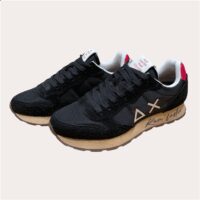 Découvrez la sneaker SUN68 pour homme , un modèle moderne et sportif qui associe confort et style urbain. Confectionnée en cuir suédé et tissu technique, cette basket noire se distingue par ses détails raffinés : logo emblématique SUN68 cousu sur le côté, inscription “Run Faster” sur la semelle et renfort arrière contrasté rouge avec marquage 1968.