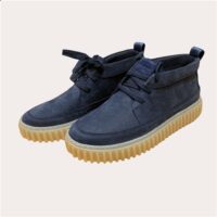 Découvrez les bottines Clarks Torhill Hi pour homme, une revisite contemporaine de l’iconique Wallabee. Confectionnées en cuir nubuck bleu marine, elles se distinguent par leur silhouette montante et leur semelle crantée épaisse en gomme naturelle qui assure confort et style. Leur design à lacets offre un maintien parfait, tandis que leur doublure douce garantit un port agréable tout au long de la journée. Un modèle à la fois urbain et décontracté, idéal pour sublimer vos looks automne-hiver.